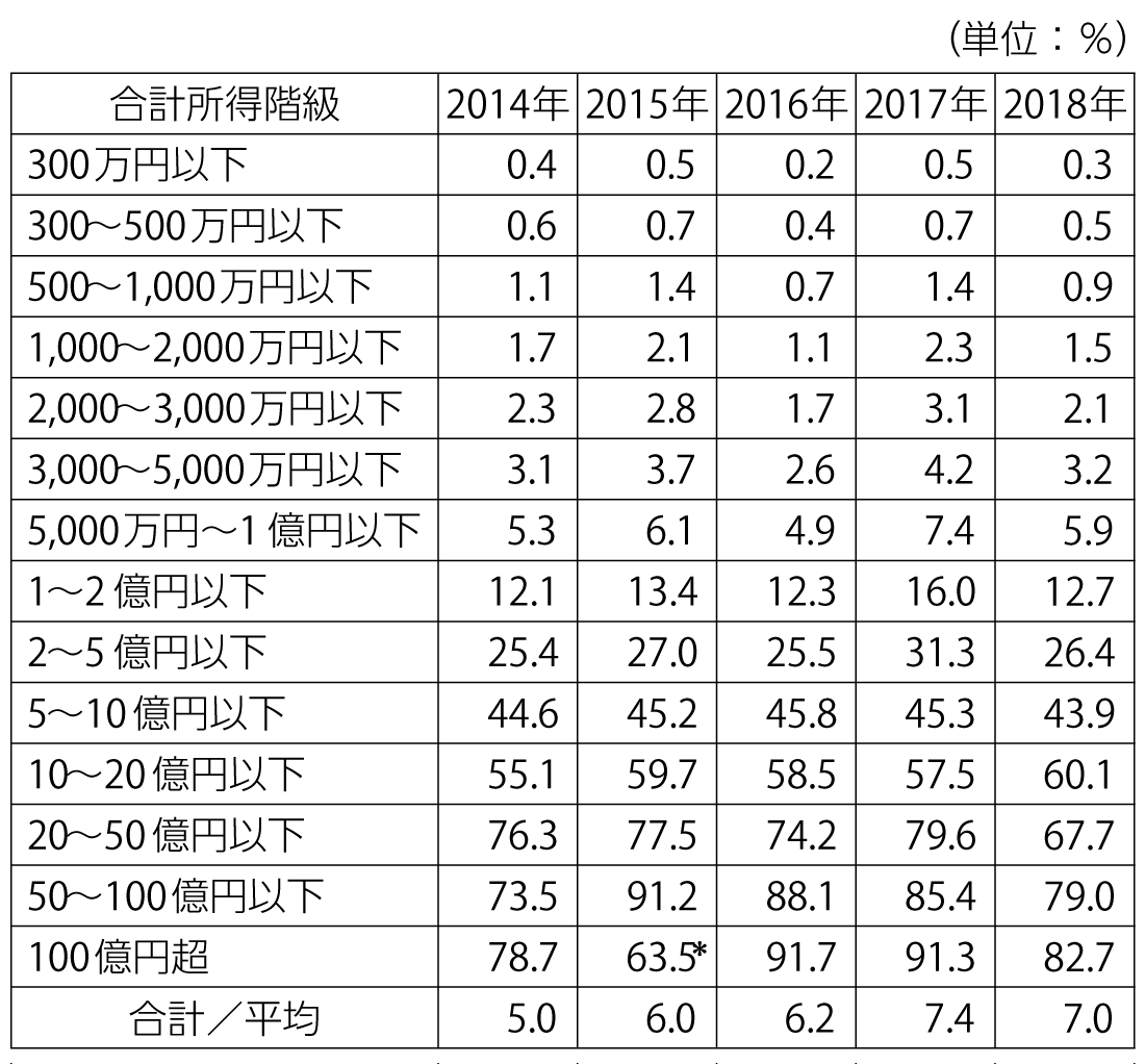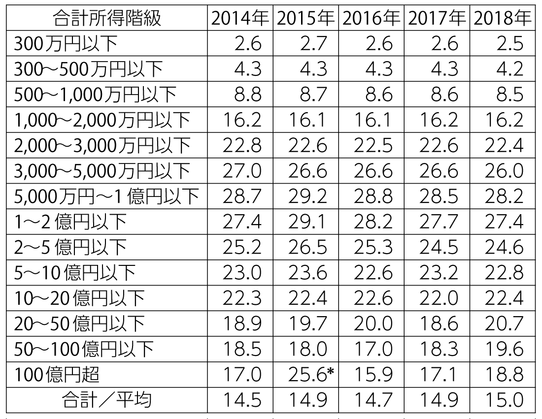 表3 合計所得階級別に見た合計所得に対する税負担率渡所得の割合